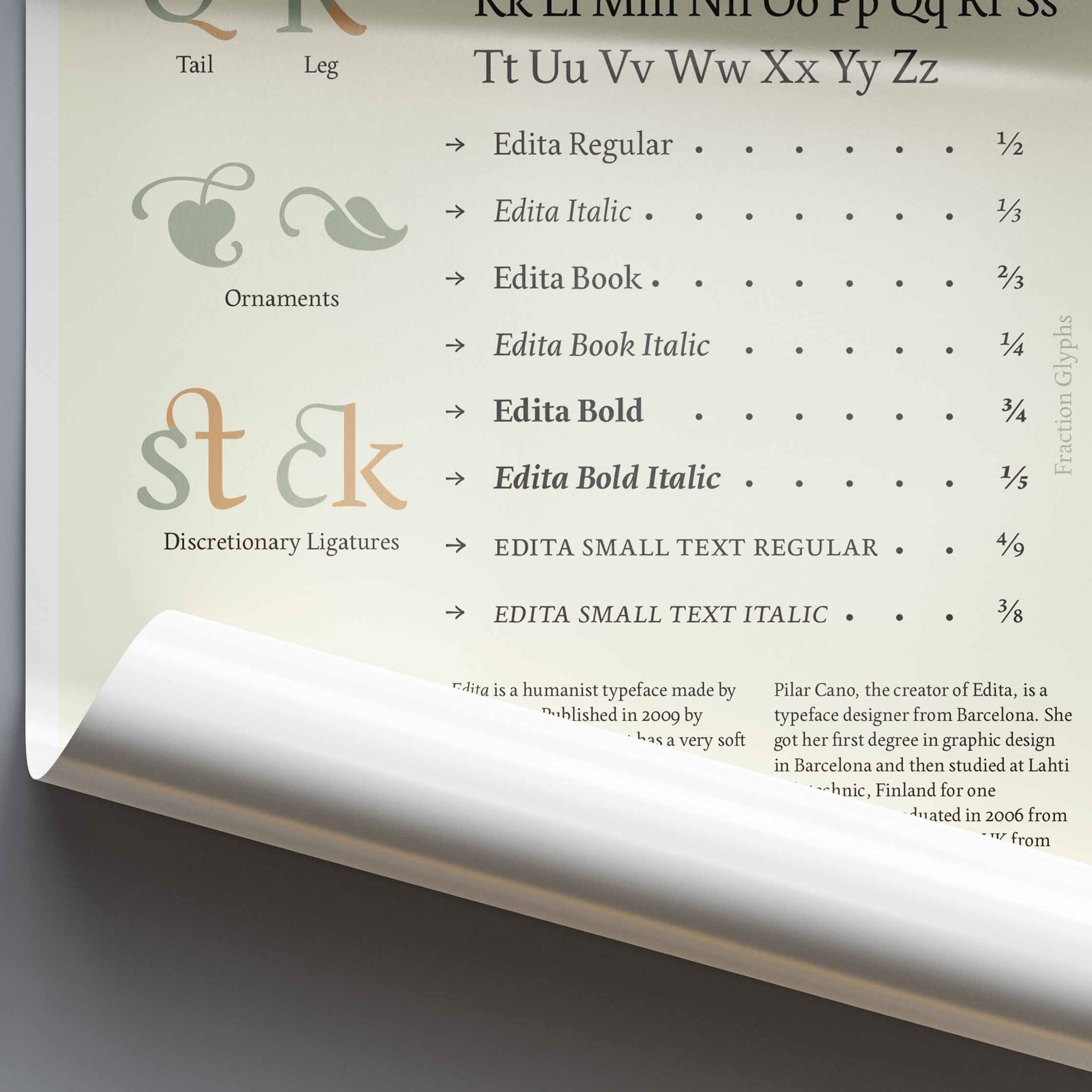 Explored and showcased the beauty of the Edita typeface through a typography poster project, using light, calming colour and layout to reflect its character and highlight its unique design features.